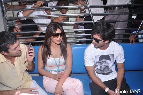 Teri Meir Kahaani star cast Shahid and Priyanka boarded local train of Mumbai from Marine Lines station to reach Jai Hind College in Church Gate.