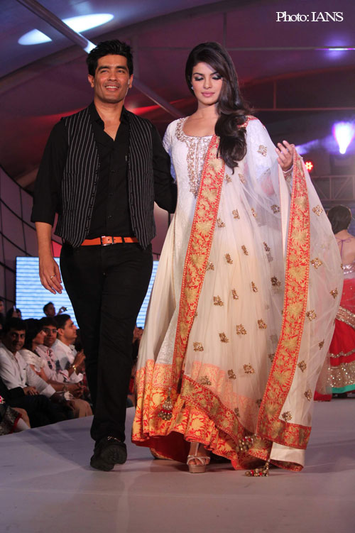Ace fashion designer Manish Malhotra with Priyanka Chopra in an fashion show organized by Manish, Shaina NC and Pidilite to support cancer patients.