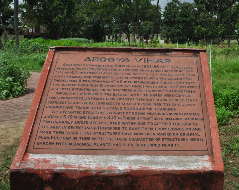 Arogya Vihar is the other important remains, which was excavated from Kumhrar. It is believed that the hospital cum monastery had rum by famous physicians Dhanvantari of Guptan period. It is interesting to know that Kumhrar is the place where noted physician of Guptan era Dhanvantari was being practiced and done a lot for the healing people. Apart from this, various valuable and important goods have been excavated from this site including copper coins, ornaments, bed of Terracota, stone and toy carts etc.