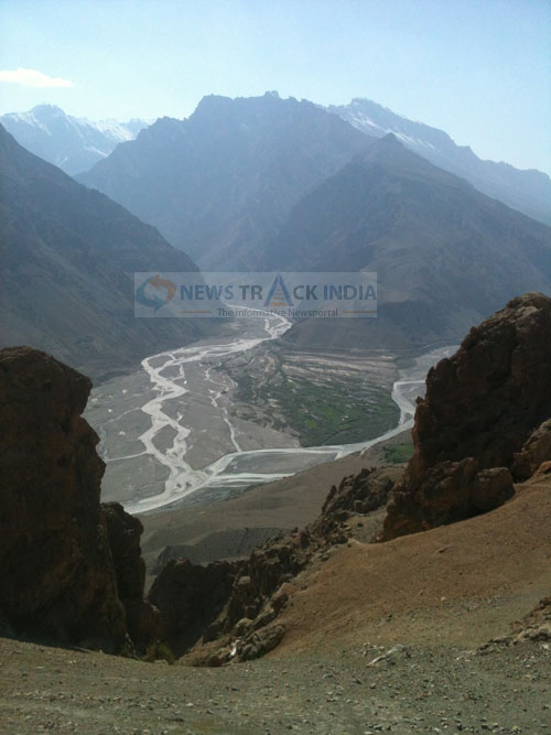 Just from the entry point of Dhankar we were looking towards the striking specter of the confluence of Spiti and Lingti River. Sunlit river streams are gleaming like silver snakes with the background of various blue shades of lofty mountains and grey and clay shades of rocky landscape on the other side.