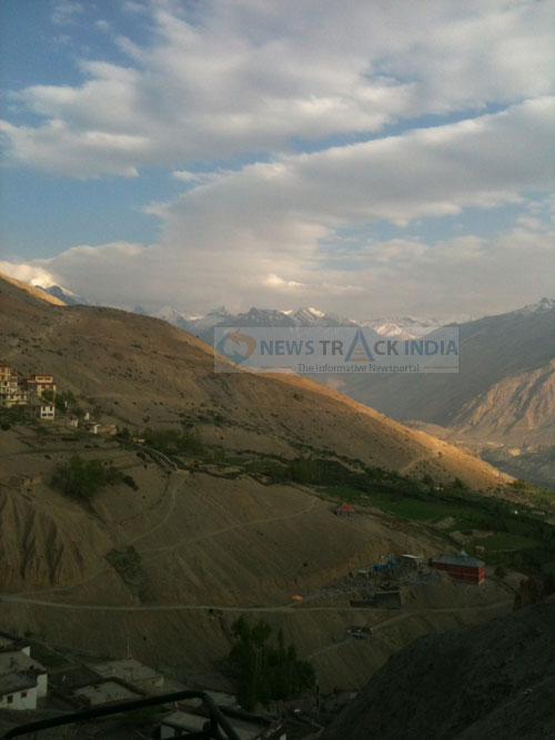This image of Dhankar at the twilight of the dusk is a visual delight. With low hung clouds and backdrop of distant snow peaks the clay colored rocky mountain is glowing with a slice of golden rays of fading soft sunlight.