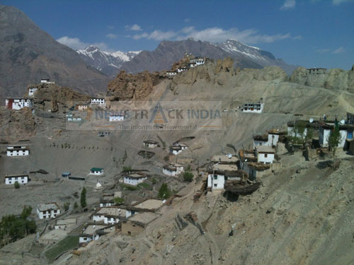 This close range yet wide angel view of the whole Dhankar village shows all the typical attributes of the architecture and natural landscape of Dhankar. The old Dhankar houses in the left slope seem more like coming out of the mountain with the mountain rocks forming part of the architecture giving a fortress like specter to the viewer at first sight.