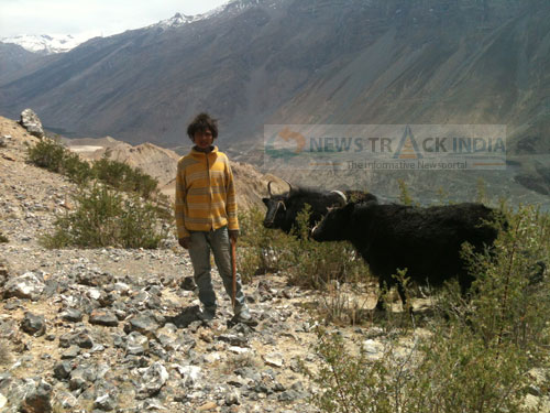 After our long stay at the side of the Dhankar lake when we are descending to come to the main road deep down, we encountered this shepherd with his herd of yak and cows in the hill slope close to Dhankar.