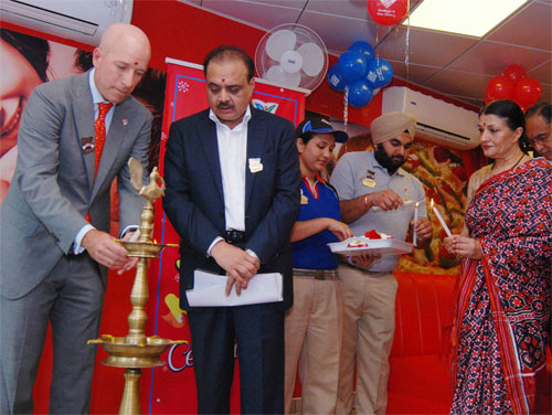 Richard Allison, Executive Vice President of Domino`s Pizza International along with Shyam S Bhartia, Chairman and Hari S Bhartia, Co-Chairman of Jubilant Food Works Limited inaugurated a new outlet of Domino`s Pizza in New Delhi on Thursday.