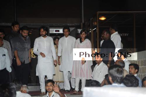 Ritesh Deshmukh and his wife Genelia D`Souza paid tribute to his father Vilasrao Deshmukh at NCPA in Mumbai.