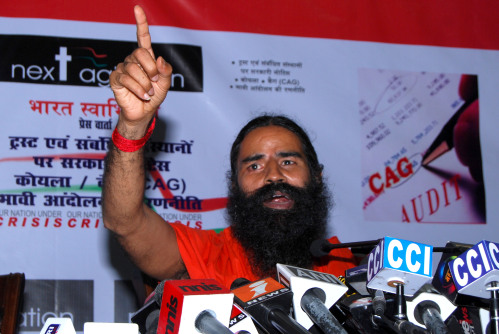 Yoga guru Baba Ramdev addressed a press conference in New Delhi on Saturday to against a congress Government and coal scam.