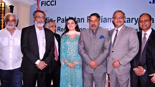 Union Commerce & industry Minister Anand Sharma posing a group photo with a Pakistani parliamentary delegation at interactive session organise by FICCI in New Delhi today.