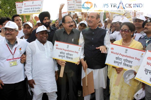 Union Minister for Health and Family Welfare, Ghulam Nabi Azad along with Minister of State for Health & Family Welfare, Santosh Chowdhary and the Health Minister of NCT of Delhi, Dr. A. K. Walia and Rajiyah participated at "The Walk towards Population Stabilization" organized on the occasion of World Population Day, in New Delhi on Thursday.