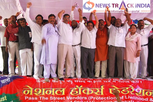 National Hawkers Federation carried out a protest at Jantar Mantar in New Delhi on Tuesday demanding regulation of street vender.