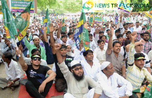 Dr. Mohammed Ayyub, President of Peace Party along with activists carried out a vishal dharna at Jantar Mantar in New Delhi on Thursday demanding reservation.