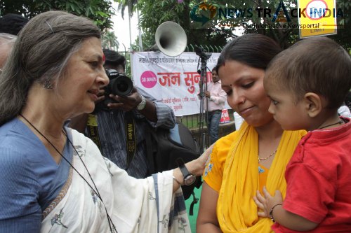 CPI Brinda Karat talked to the family members of Maruti Suzuki workers in public hearing for justice at Jantar Mantar in New Delhi on Friday.