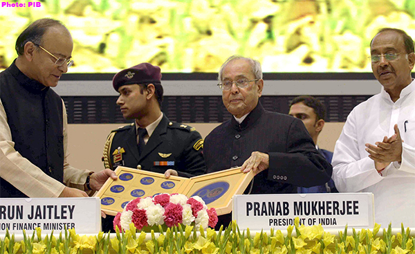 New Delhi on February 20, 2017: The President, Pranab Mukherjee at the inauguration of the 90th Anniversary of Shri Ram College of Commerce, in New Delhi. The Union Minister for Finance and Corporate Affairs, Shri Arun Jaitley and the Minister of State for Youth Affairs and Sports (I/C), Water Resources, River Development and Ganga Rejuvenation, Shri Vijay Goel are also seen.