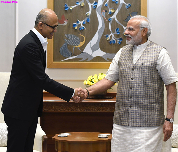 New Delhi on February 21, 2017: The CEO of Microsoft, Shri Satya Narayana Nadella calls on the Prime Minister, Shri Narendra Modi, in New Delhi on February 21, 2017.
