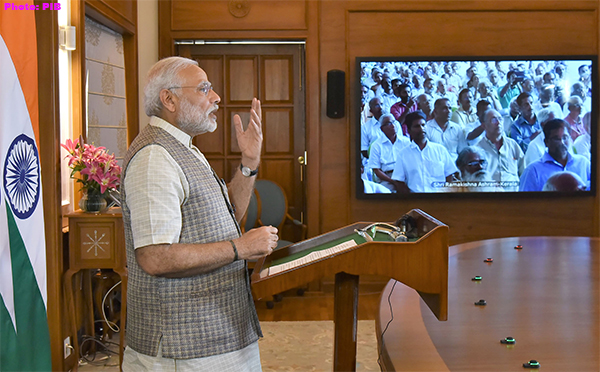 New Delhi on February 21, 2017: The Prime Minister, Narendra Modi addressing Sri Ramakrishna Vachanamrita Satram at Tiruvalla, Kerala, via video conferencing, in New Delhi.