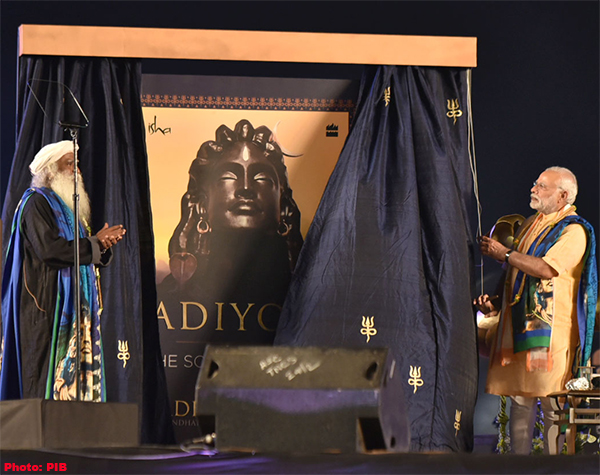 Tamil Nadu on February 24, 2017: The Prime Minister, Shri Narendra Modi releasing the book 'Adiyogi - The Source of Yoga' at the unveiling ceremony of 112 feet statue of face of 'Adiyogi - The Shiva', organised by the Isha Foundation, in Coimbatore, Tamil Nadu.