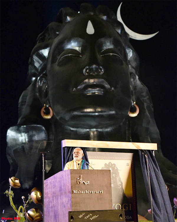 Tamil Nadu on February 24, 2017: The Prime Minister, Shri Narendra Modi delivering his address at the unveiling ceremony of 112 feet statue of face of 'Adiyogi - The Shiva', organised by the Isha Foundation, in Coimbatore, Tamil Nadu.