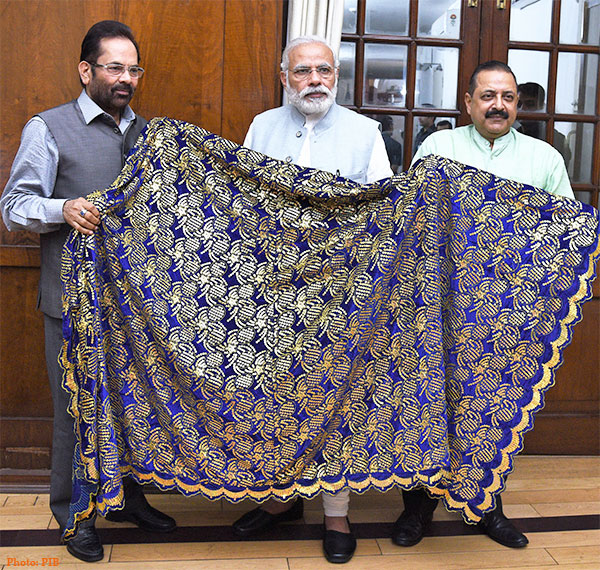 New Delhi on March 24, 2017: The Prime Minister, Shri Narendra Modi hands over Chaadar to be offered at Dargah Khwaja Moinuddin Chishti Ajmer Sharif to the Minister of State for Minority Affairs (Independent Charge) and Parliamentary Affairs, Shri Mukhtar Abbas Naqvi and the Minister of State for Development of North Eastern Region (I/C), Prime Minister’s Office, Personnel, Public Grievances & Pensions, Atomic Energy and Space, Dr. Jitendra Singh, in New Delhi.